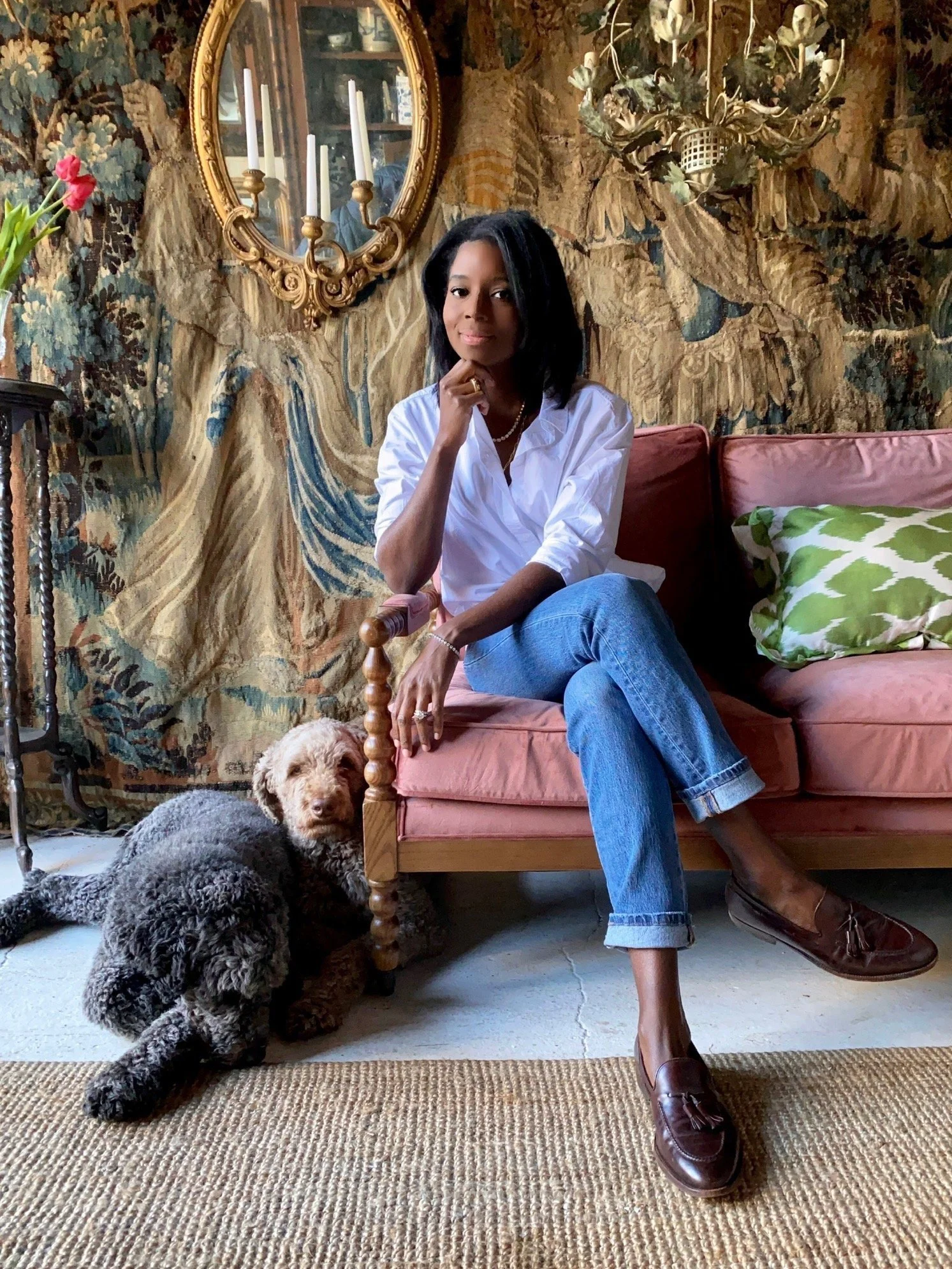 Pictured: Ambrice with her atelier assistants Theo and Edison
