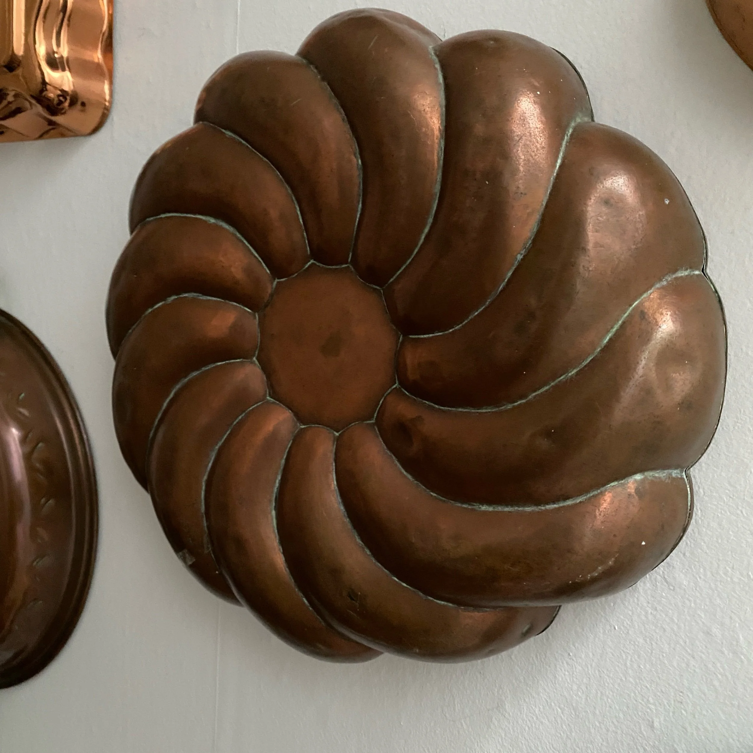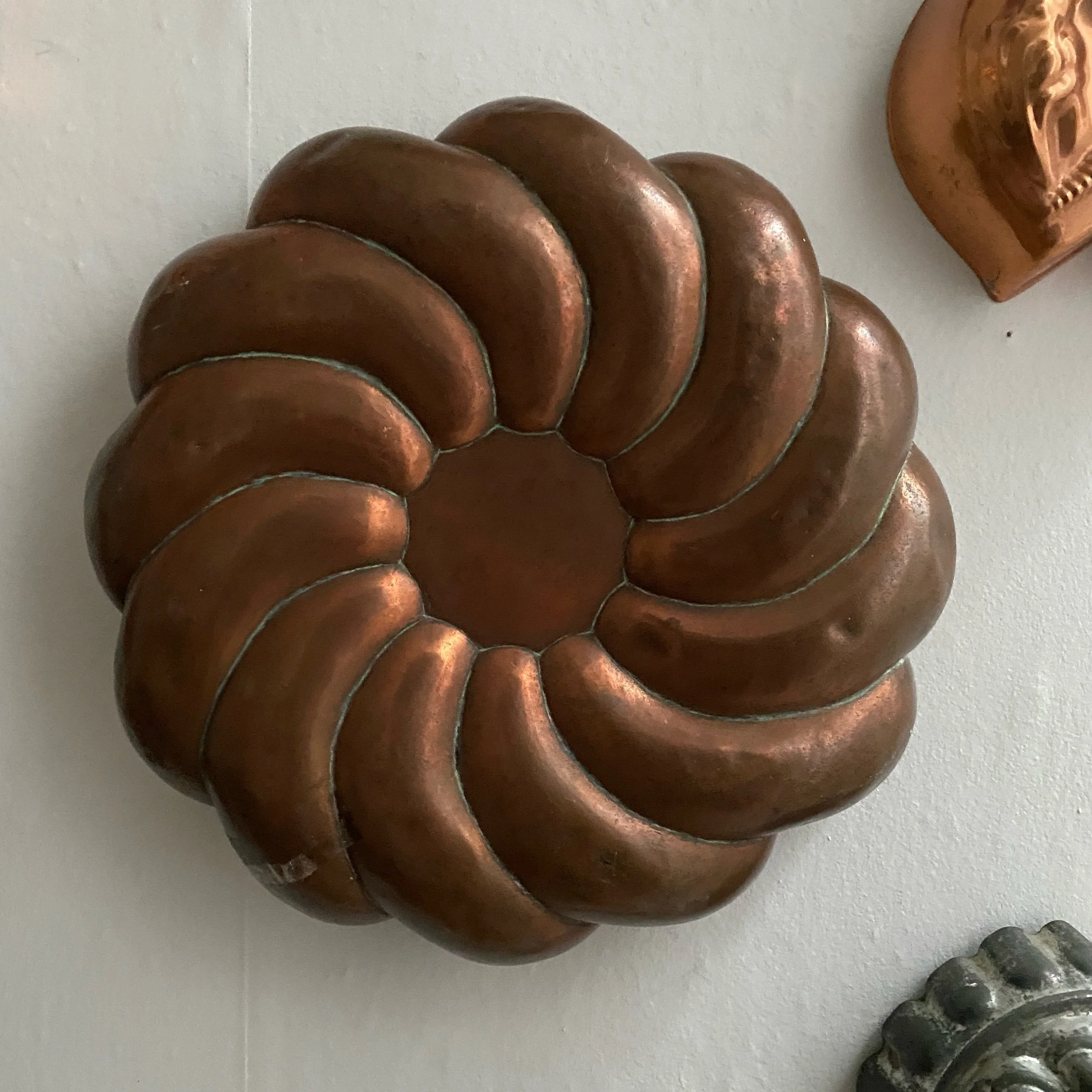 antiques › Antique English copper mold Image 1 of 3 Image 2 of 3 Image 3 of 3 Antique English copper mold £110.00 Antique English copper mold, perfect for country kitchen or for rustic cottage decor. 28cm in diameter. Quantity: Add To Cart Added! Antique English copper mold, perfect for country kitchen or for rustic cottage decor. 28cm in diameter.